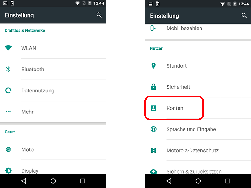 3) Scrollen Sie bis Sie “Konten” tippen können und tuen Sie dies.