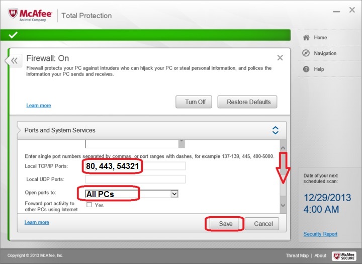 In the “Local TCP/IP Ports” box, enter 80, 443, 54321